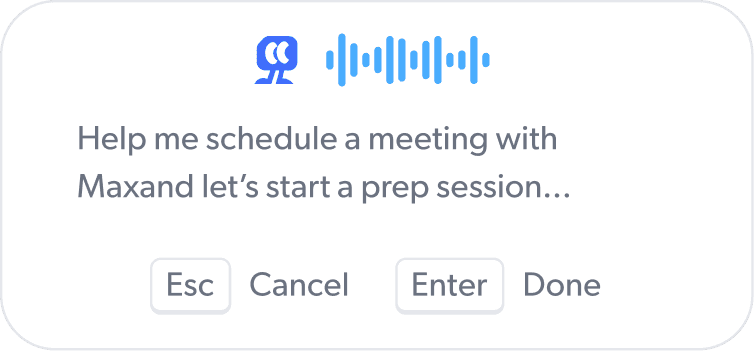 Use your voice to prepare for meetings, record conversations, and get instant transcripts, summaries, Q&A and action items, all powered by AI.